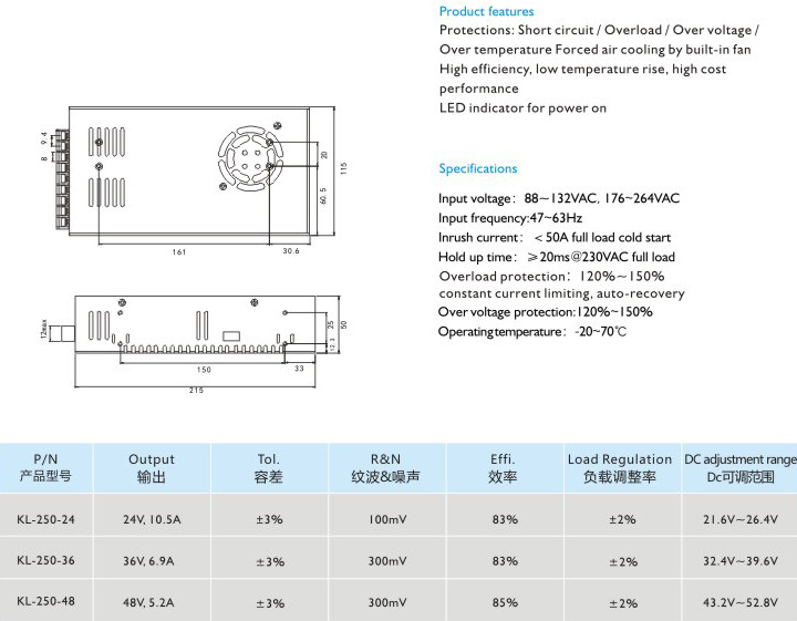 高效率、低溫升、高性價比 適用于LED顯示、工業(yè)控制 輸入電壓:88-132VAC,176-264VAC 輸入頻率:47~63Hz 沖擊電流:<50A滿載冷態(tài) 保持時間:≥20ms@230VAC滿載 過載保護:120%-150%自動恢復限;限流保護,自動恢復 過壓保護:120%~150% 運行溫度:-20-70℃" />