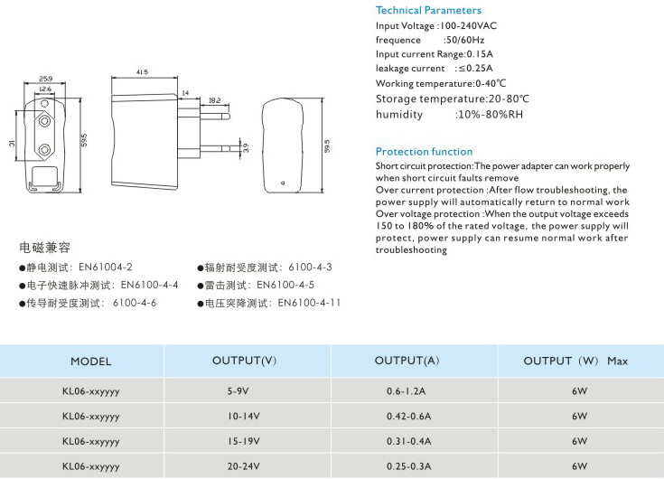 短路保護(hù): 電源適配器在短路解除時(shí)能正常工作恢復(fù)